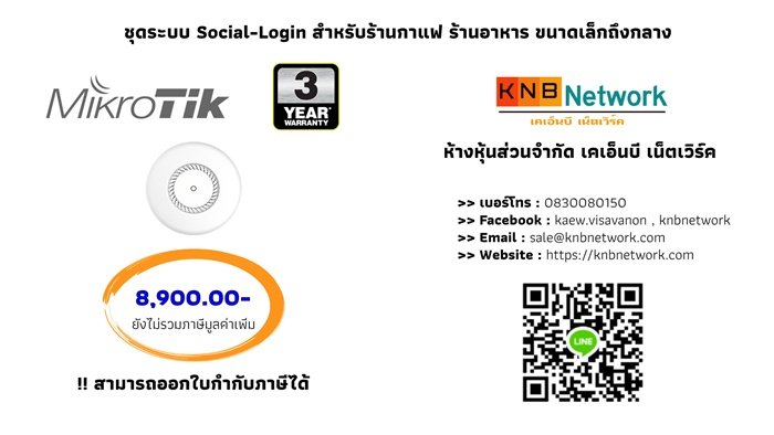 รายละเอียด : ชุดอุปกรณ์ social-login hotspot เหมาะสำหรับหอพัก อพาร์ตเม้น ร้านอาหาร ร้านกาแฟ ใช้งานง่าย ไม่มีความรู้ก็สามารถดูแลได้ มีระบบ API จัดการผู้ใช้งานได้อย่างง่ายดาย ไม่ว่าจะอยู่ที่ใดบนโลก แค่มีอินเตอร์เน็ตก็สามารถเข้าจัดการได้หมด สอนการใช้งานให้ฟรีจนกว่าจะเป็น พร้อมรีโมทช่วยเหลือปัญหา กระจาย Bandwith ได้อย่างยืดหยุ่น ด้วยเทคโนโลยี Qos-Priority หมดปัญหาเรื่องอินเตอร์เน็ตช้า เข้าเว็บได้เร็วขึ้น ปัญหาสัญญาณ WIFI ไม่ทั่วถึงจะหมดไป พร้อมเก็บ Log ตามพรบ.คอมพิวเตอร์ 2560 สนใจติดต่อสอบถามเพิ่มเติม Line id : kaewpuy หรือ โทร : 083-008-0150 แก้ว