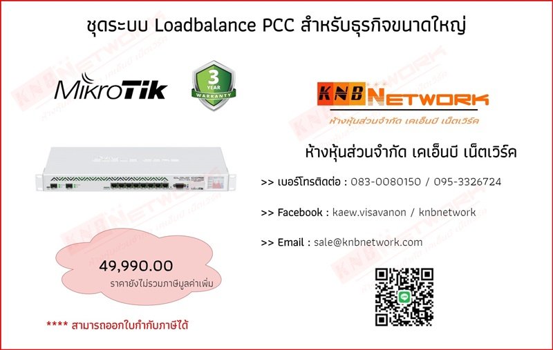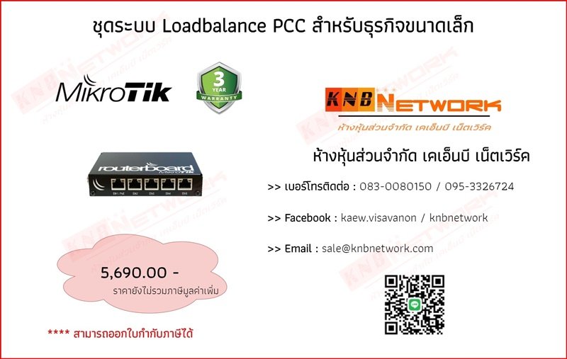 รายละเอียด : ชุดอุปกรณ์ Mikrotik Loadbalance PCC รวมอินเตอร์เน็ต แบบ Backup WAN Failover สำหรับองค์กรที่ให้ความสำคัญกับอินเตอร์เน็ตอย่างมาก โดยห้ามหลุด ห้าม Down Solution นี้สามารถตอบโจทย์ให้ท่านได้เป็นอย่างดี และยังมาพร้อม ระบบมากมายที่จัดเต็มอยู่ข้างใน ในราคาที่ท่านสามารถจับต้องได้ เหมาะสำหรับ Office ขนาดเล็กและขนาดกลาง ระบบพร้อม Setup สนใจติดต่อสอบถามเพิ่มเติม Line id : kaewpuy หรือ โทร : 083-008-0150 แก้ว